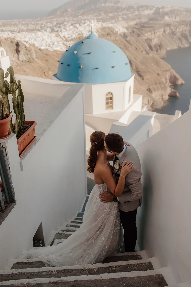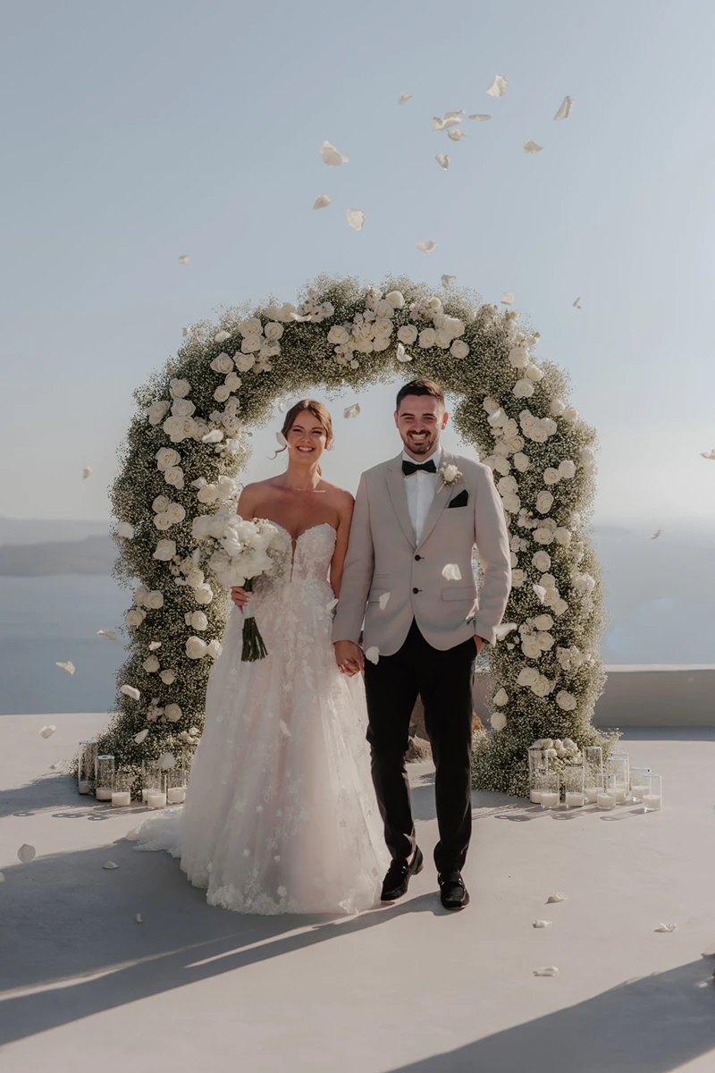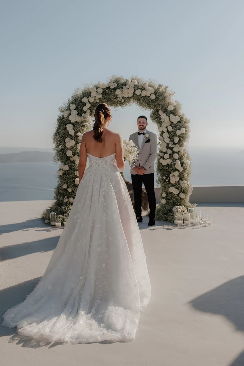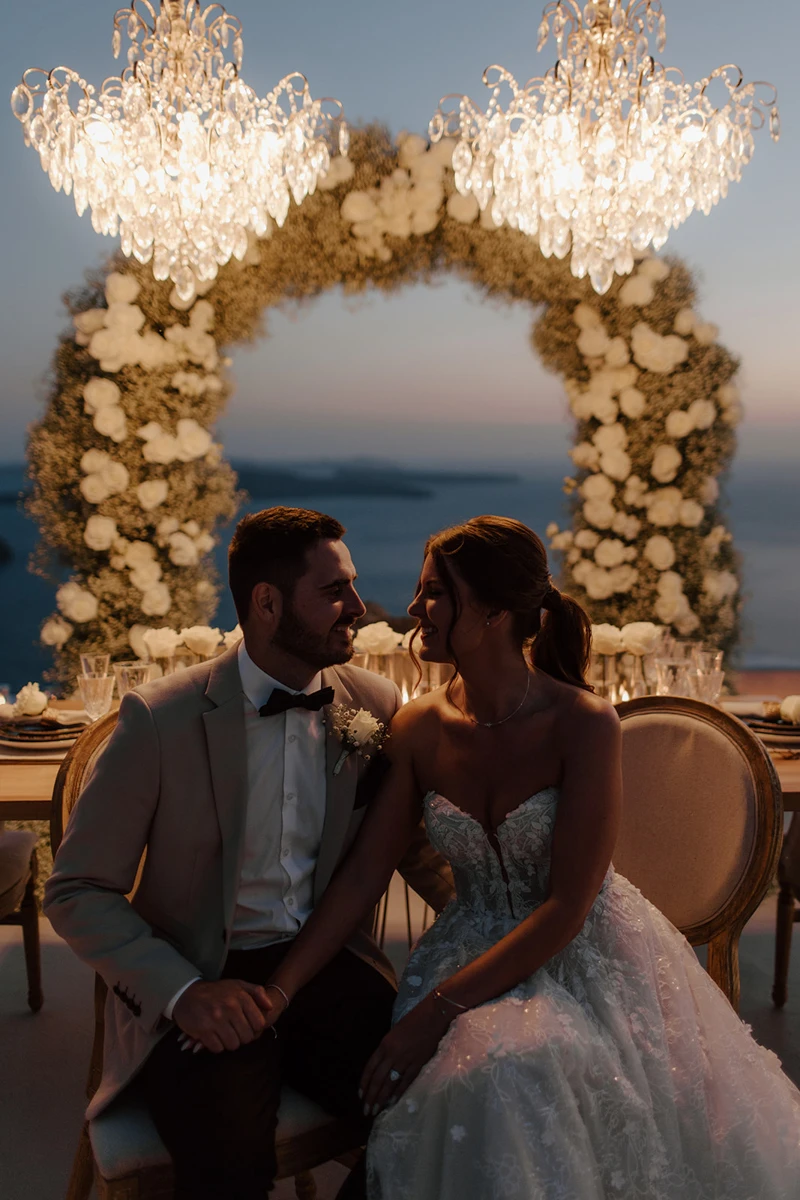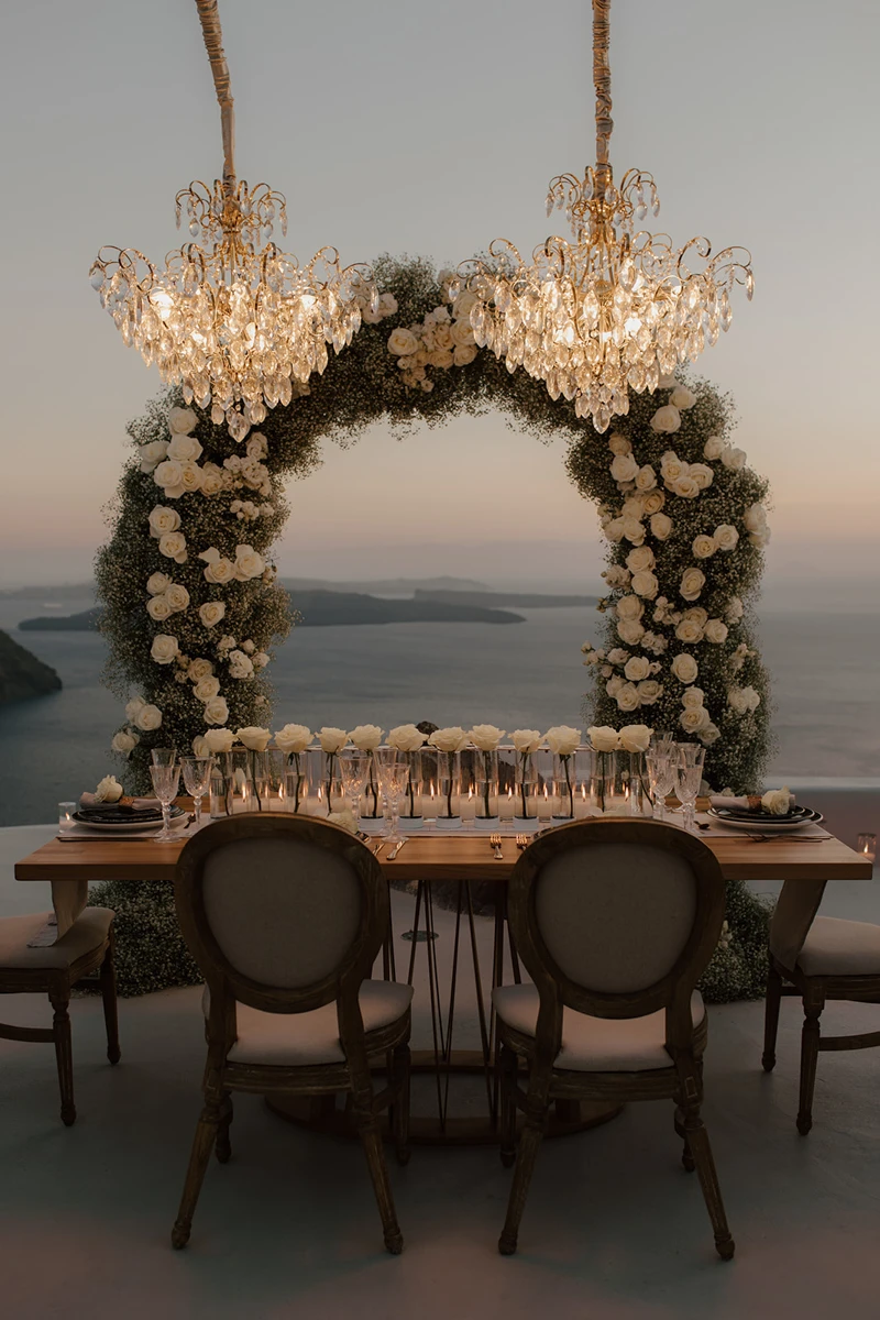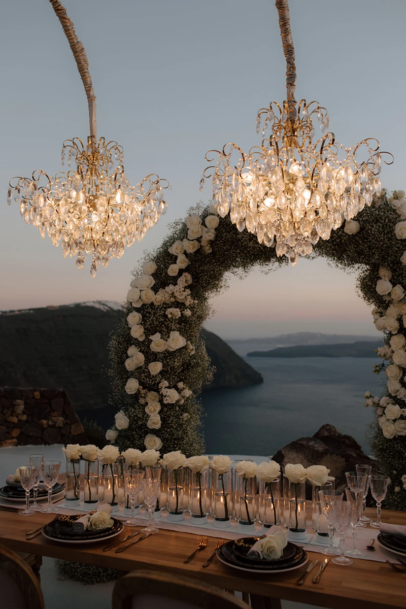 Levi and Aaron chose to celebrate their love with an intimate wedding, surrounded only by their parents. The entire day, from preparations to the ceremony and dinner, took place at the beautiful Aenaon Villas, with their photographer traveling all the way from the UK to capture every precious moment—including a breathtaking sunrise session on the caldera cliffs.