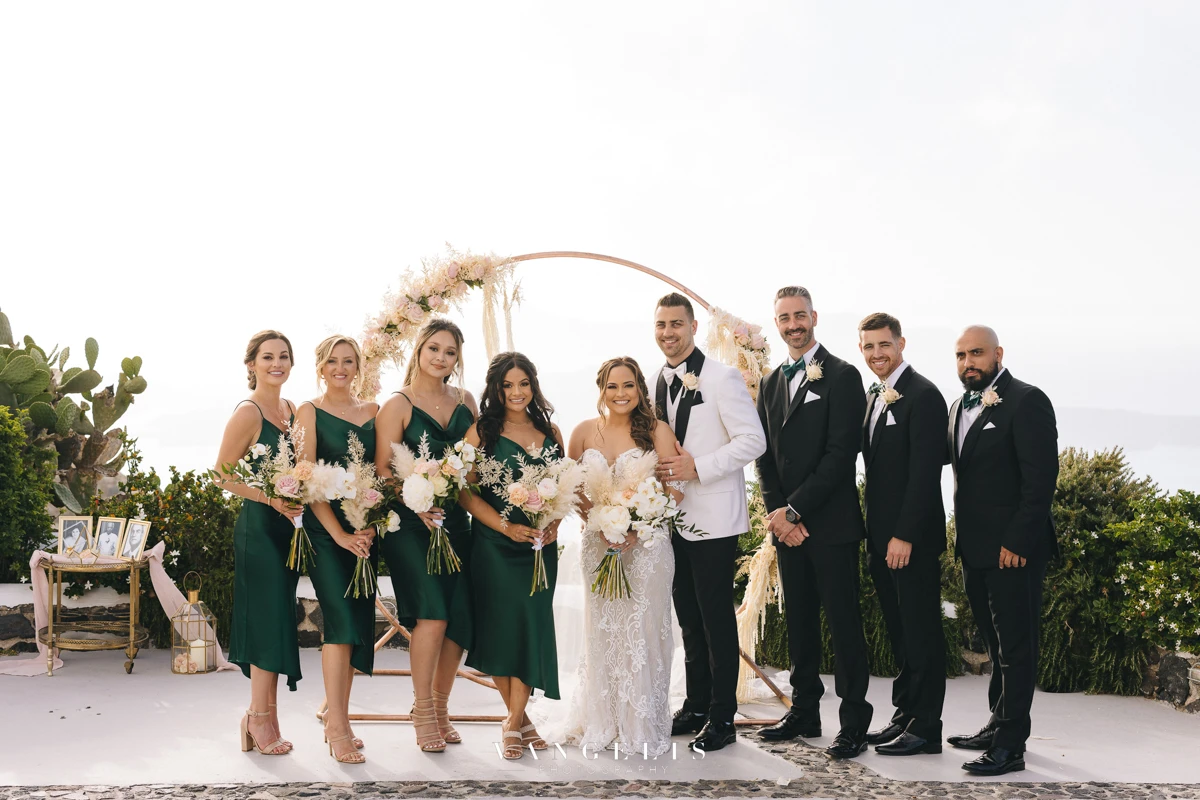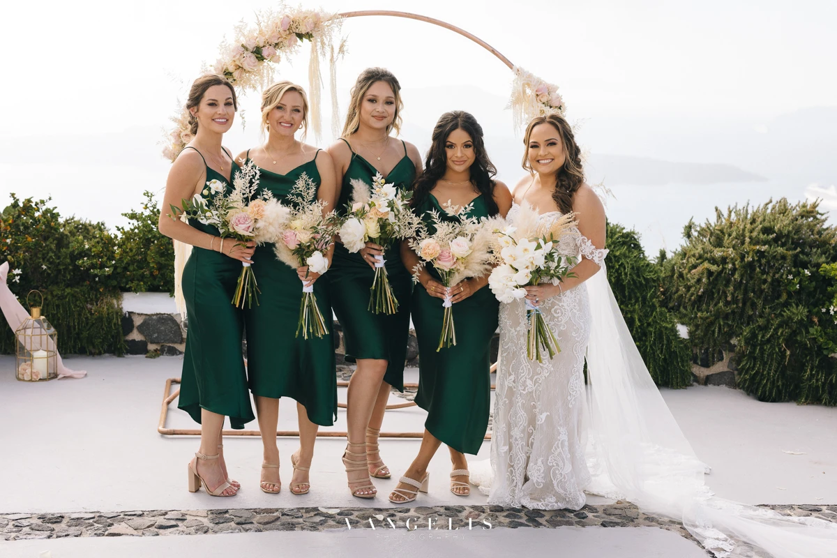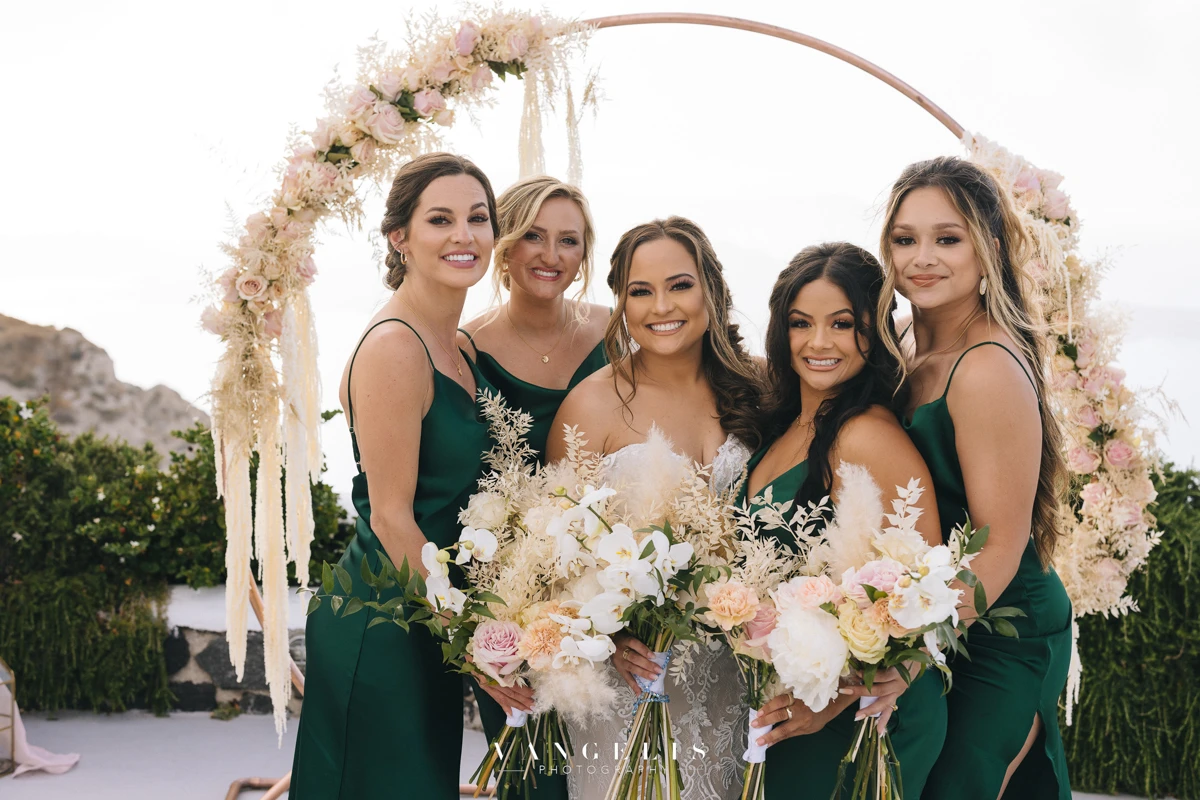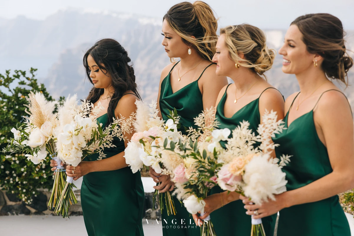 The bridesmaids and maid of honor looked stunning in their dark green dresses, an exquisite choice by Lexi that complemented the natural beauty of the island and added a touch of elegance to the day.