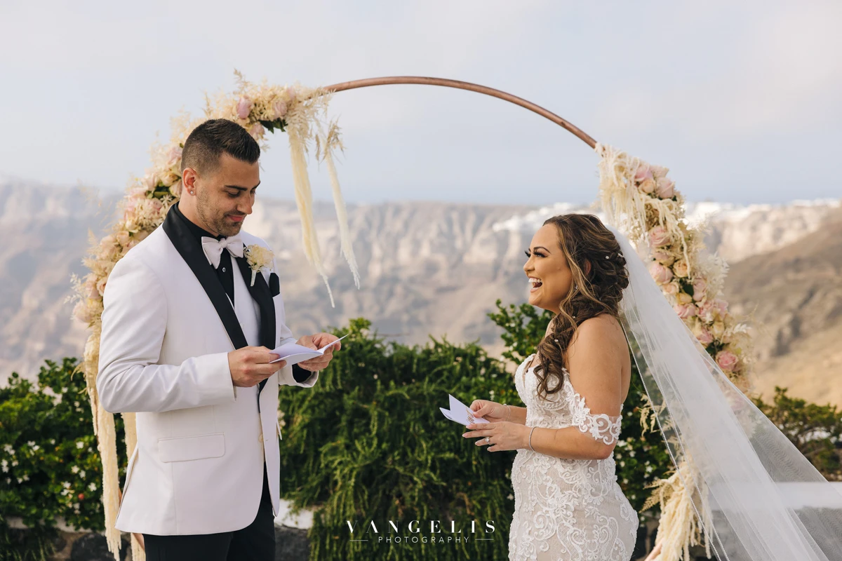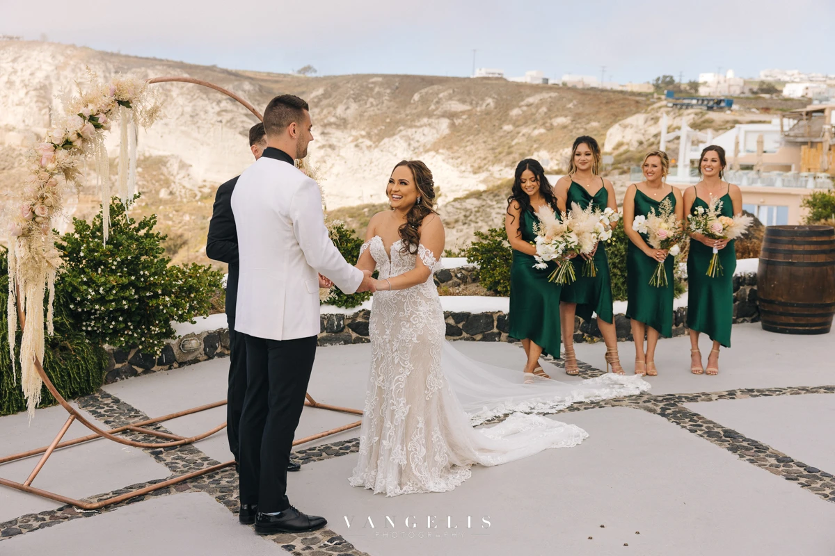 Lexi and Kyle traveled all the way from the US to marry in the enchanting Santorini, trusting us to bring their destination wedding vision to life. They knew they wanted a venue with breathtaking views, and Venetsanos Winery provided the perfect setting for their celebration, surrounded by family and close friends.