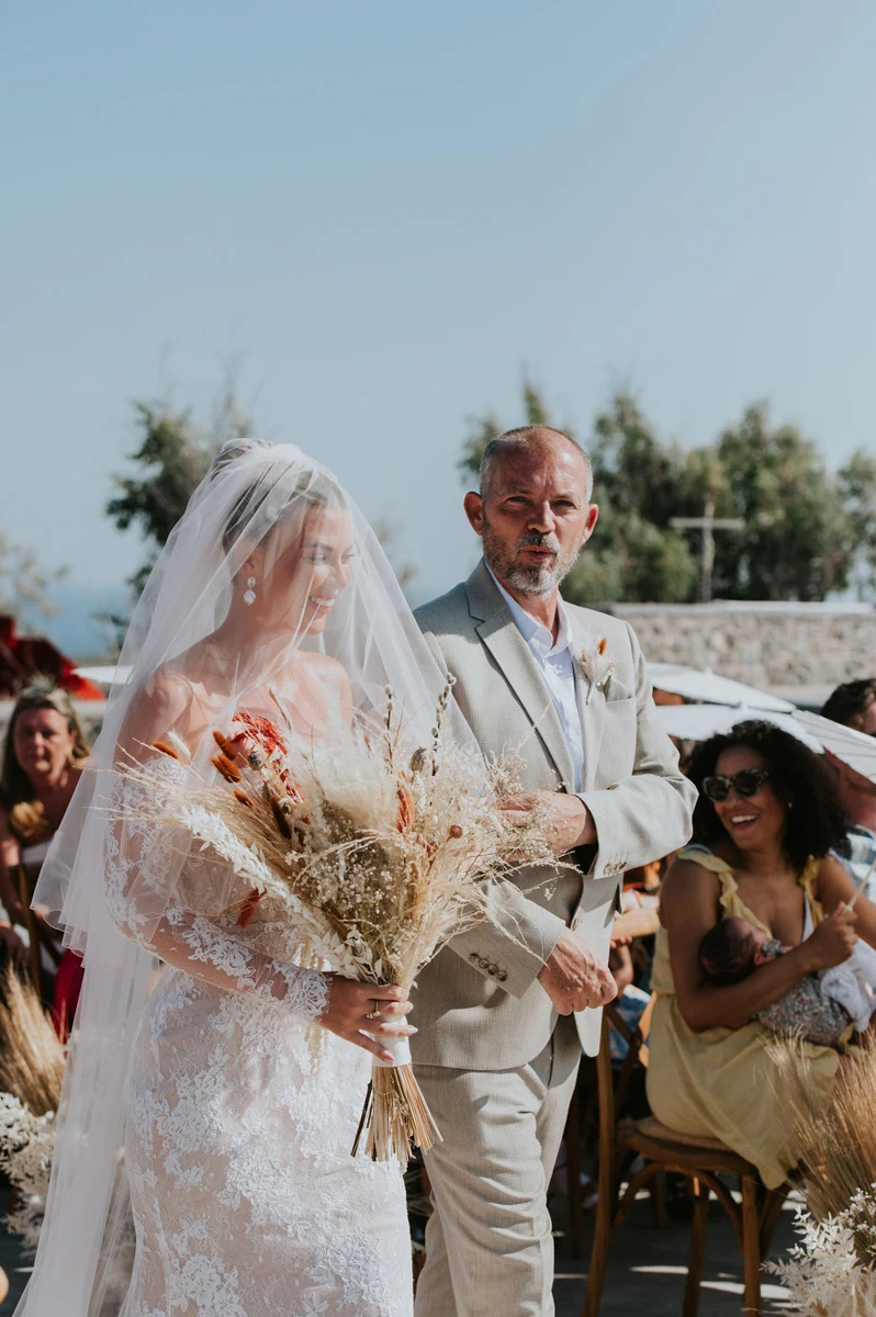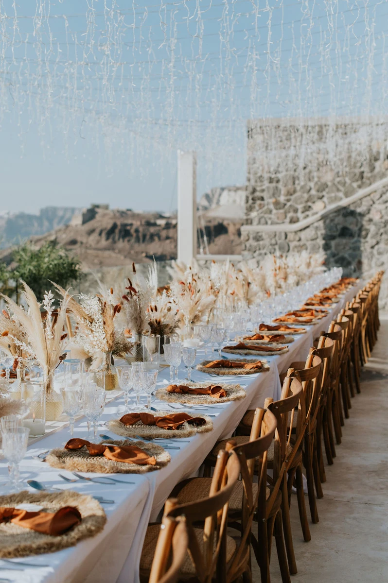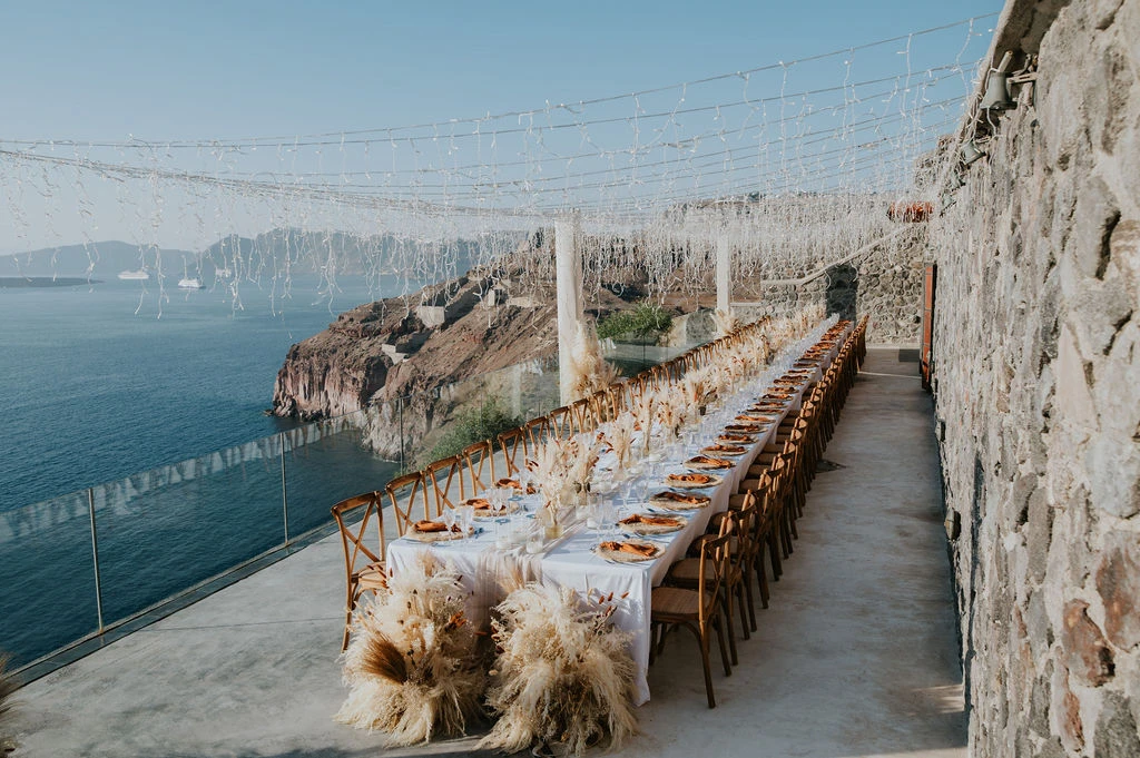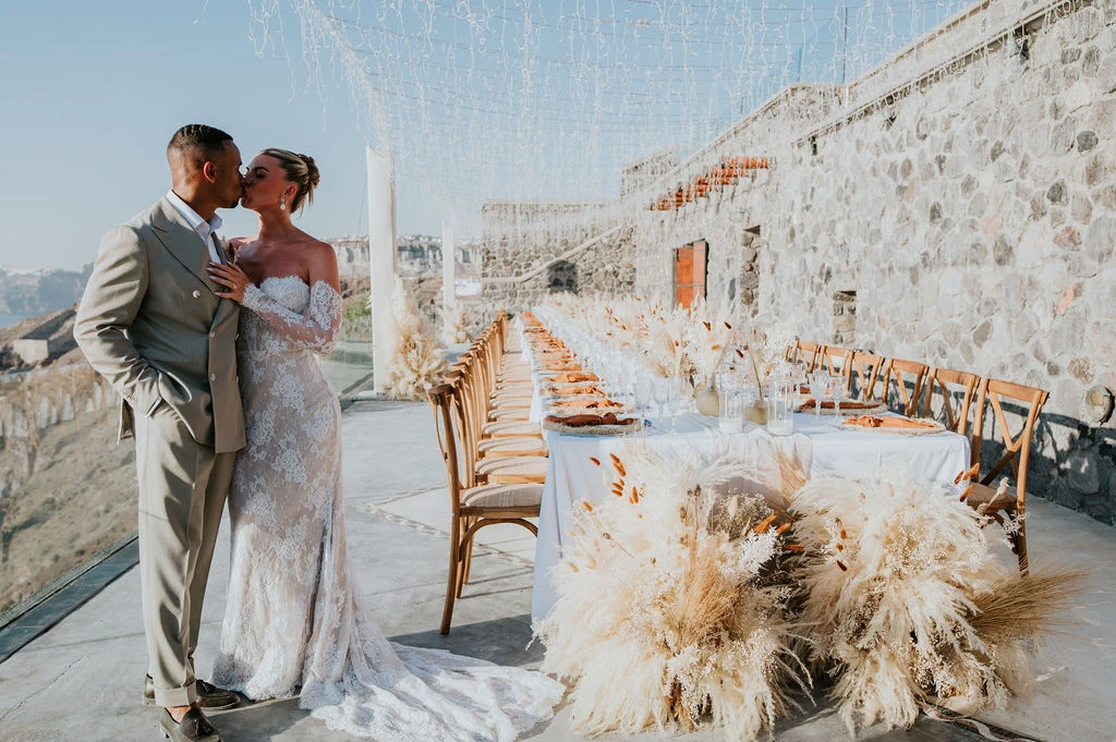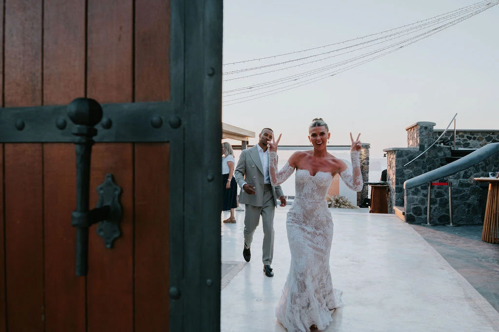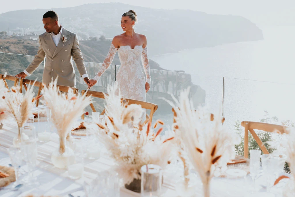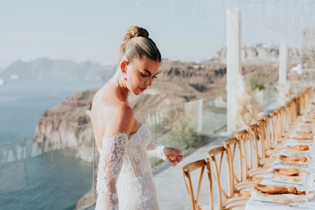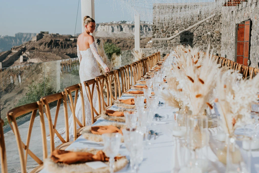 Their wedding took place on the stunning caldera cliff at Cavo Ventus, a venue that perfectly reflected their style and vision. Molly’s dream of a terracotta-themed wedding came to life beautifully, blending seamlessly with the natural elegance of the venue.