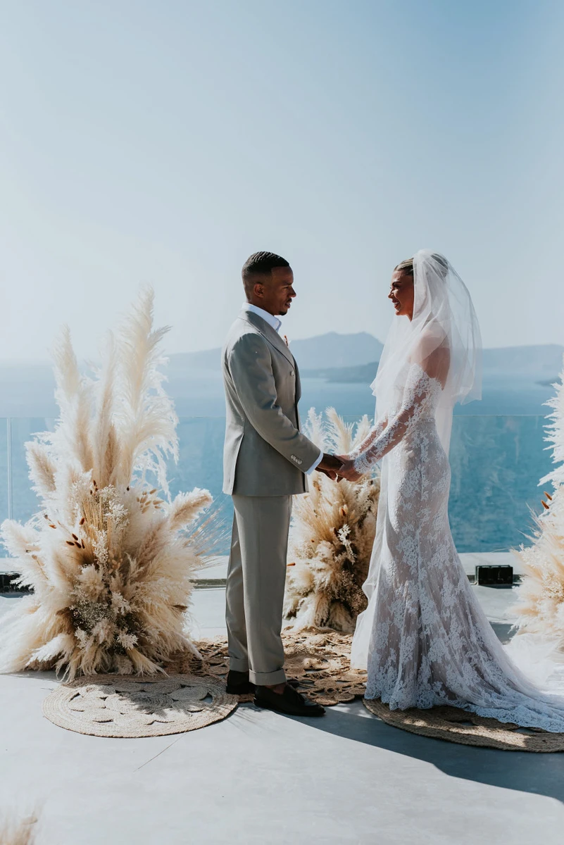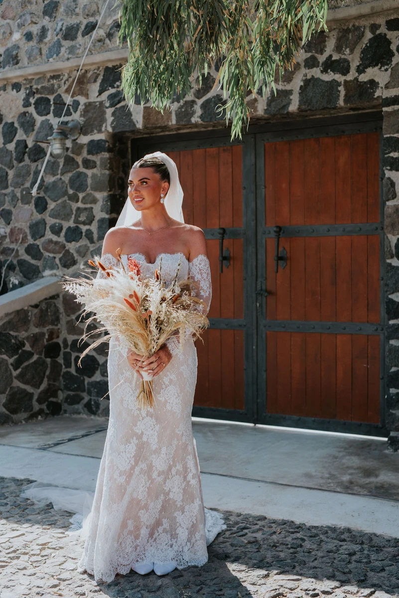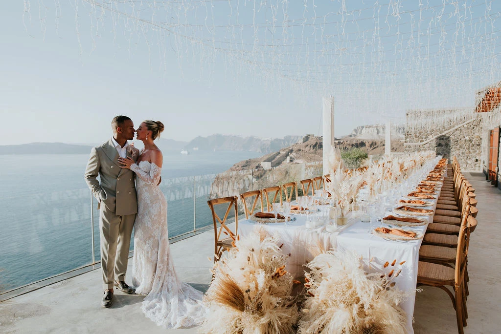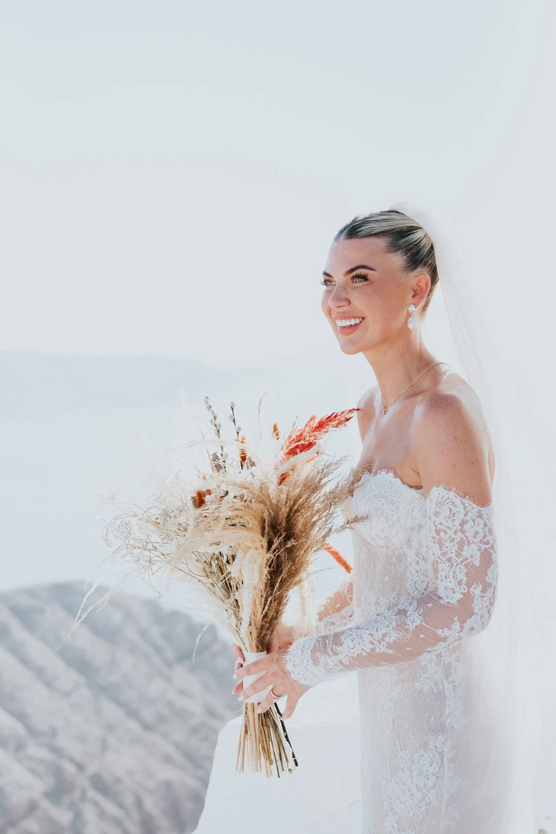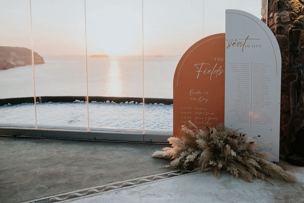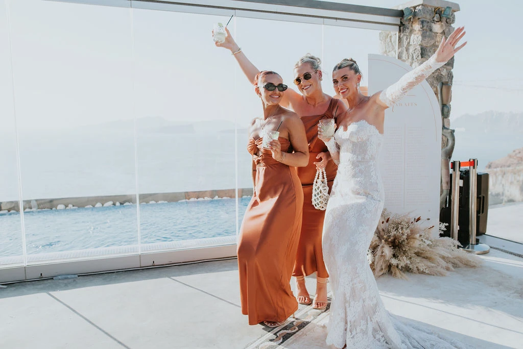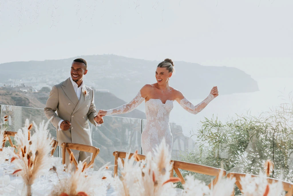 Their wedding took place on the stunning caldera cliff at Cavo Ventus, a venue that perfectly reflected their style and vision. Molly’s dream of a terracotta-themed wedding came to life beautifully, blending seamlessly with the natural elegance of the venue.