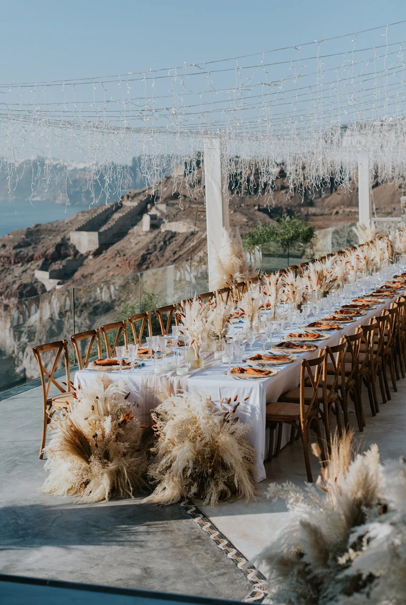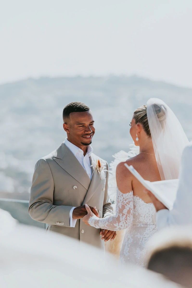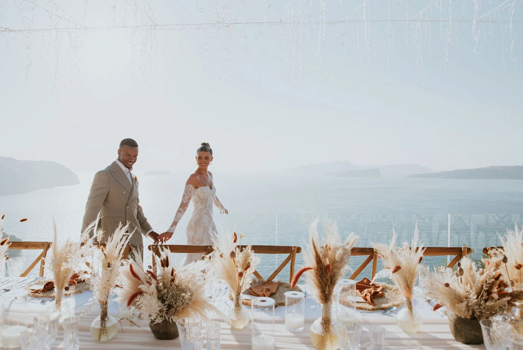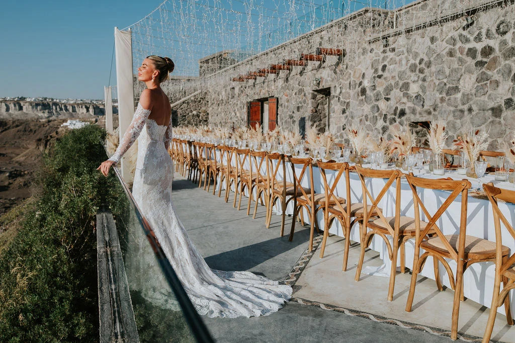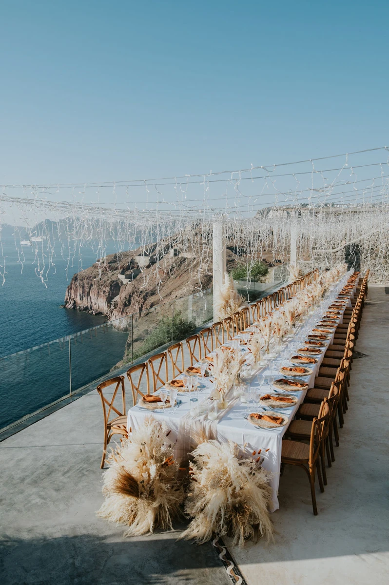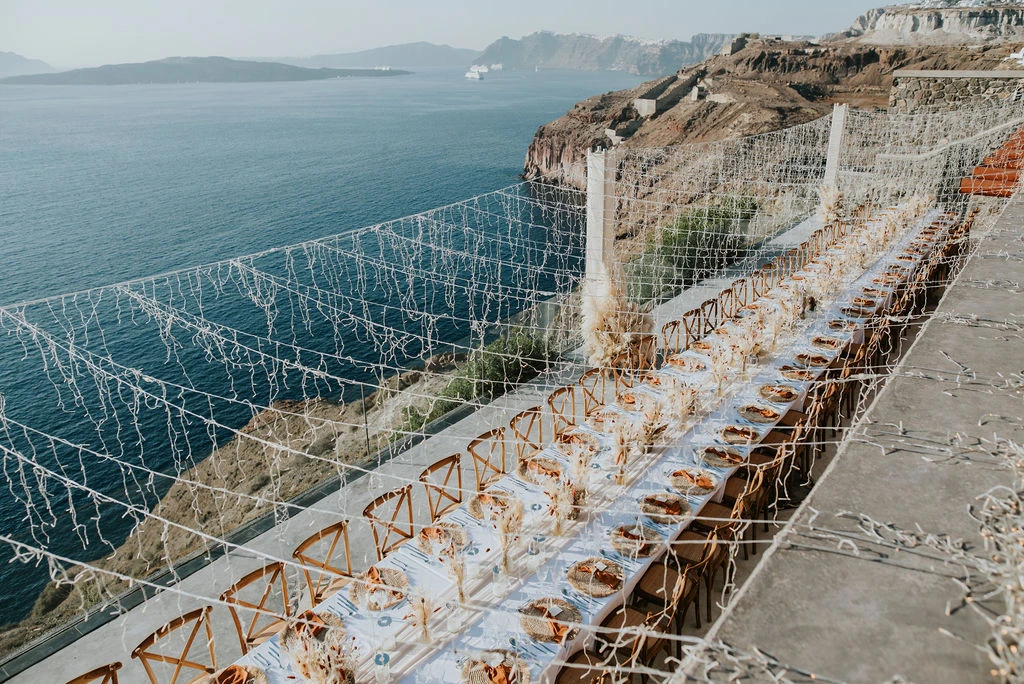 Their wedding took place on the stunning caldera cliff at Cavo Ventus, a venue that perfectly reflected their style and vision. Molly’s dream of a terracotta-themed wedding came to life beautifully, blending seamlessly with the natural elegance of the venue.