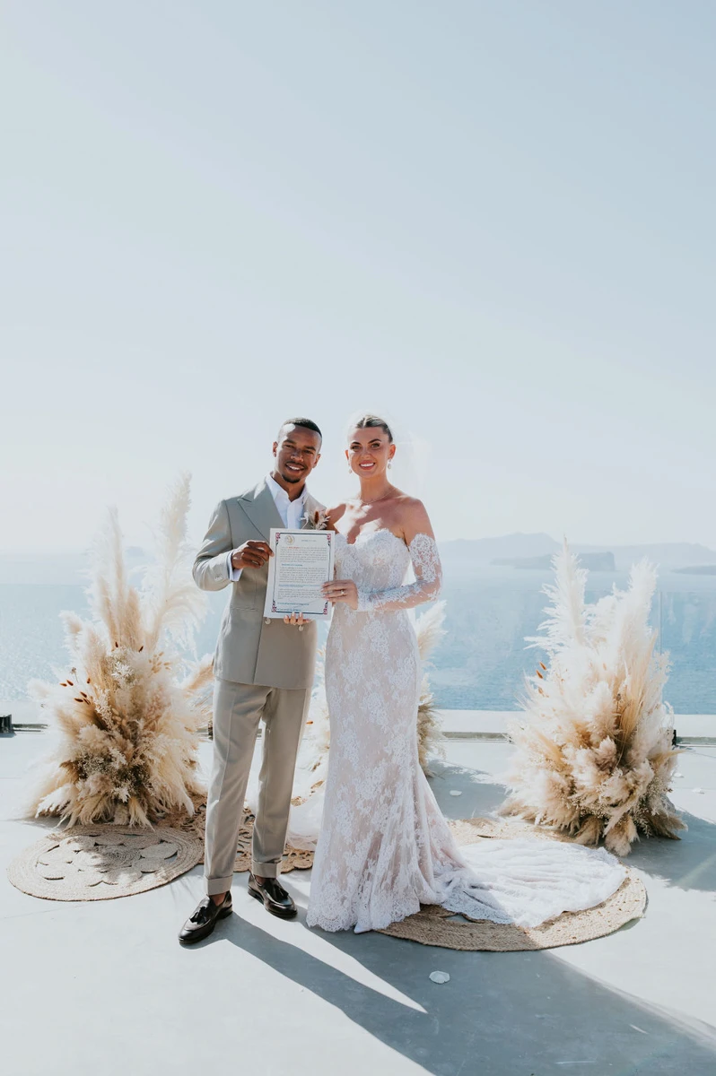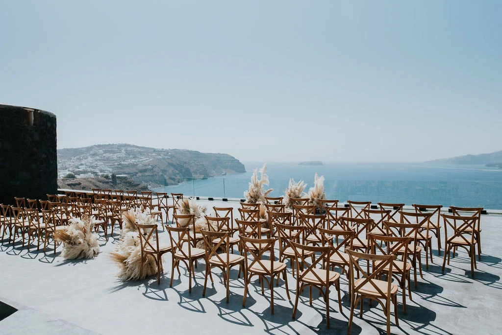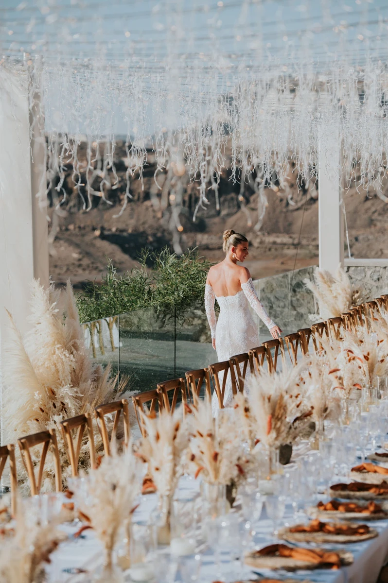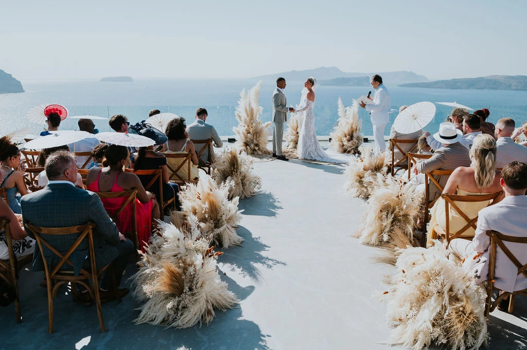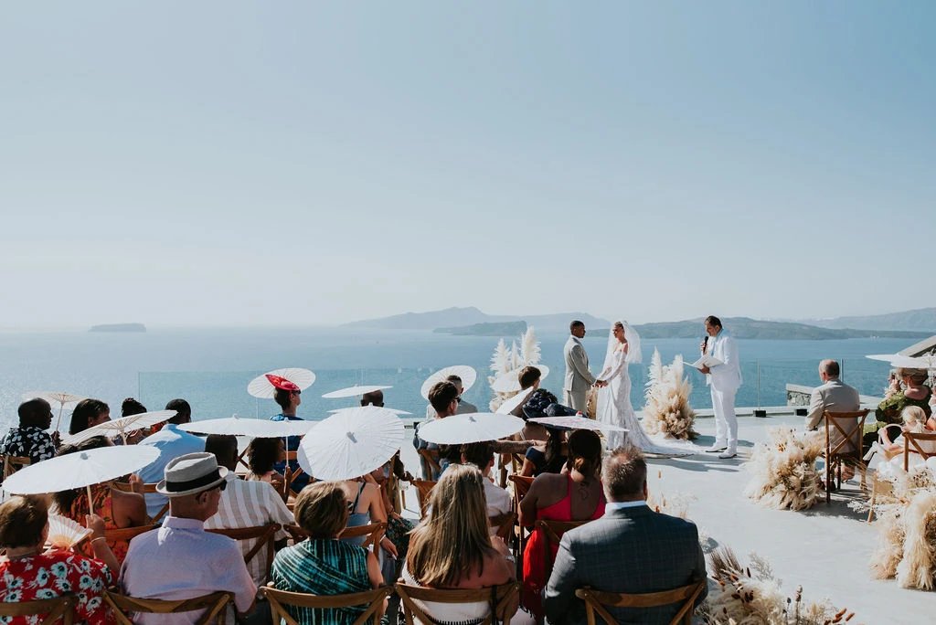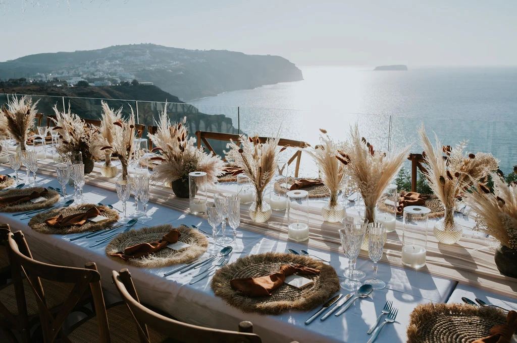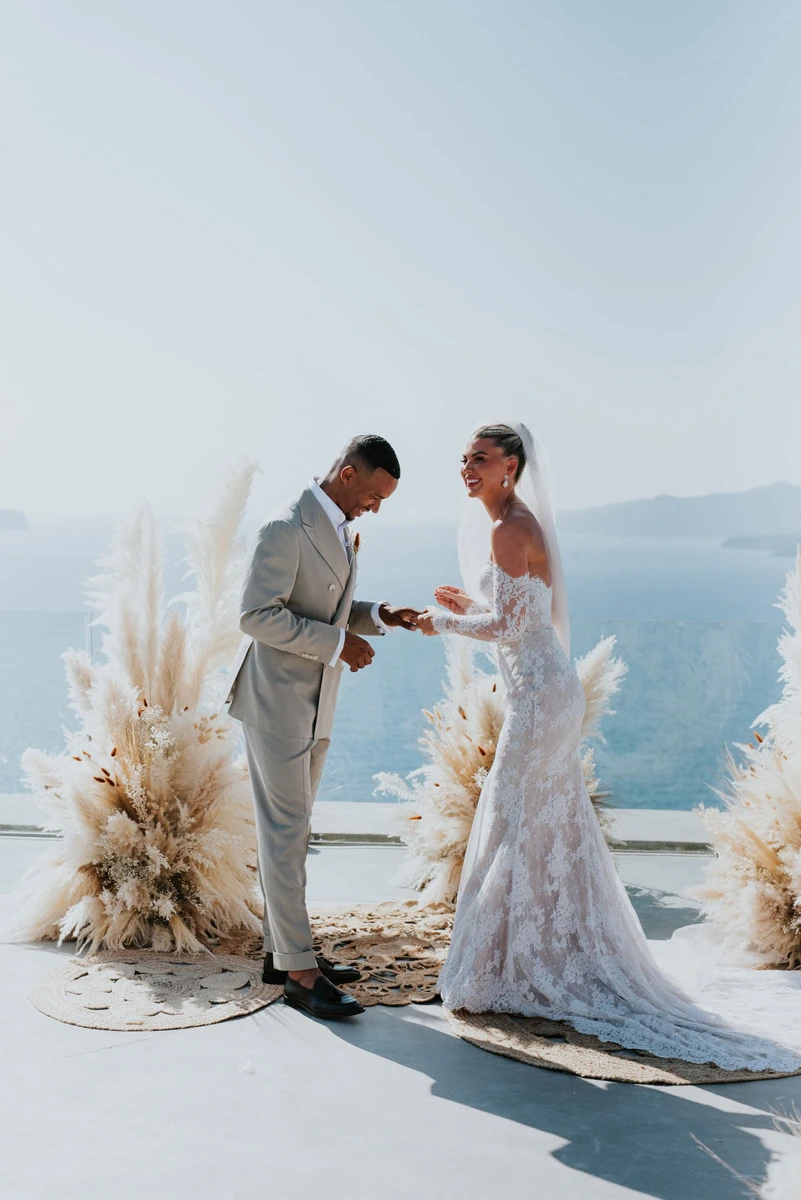 Their wedding took place on the stunning caldera cliff at Cavo Ventus, a venue that perfectly reflected their style and vision. Molly’s dream of a terracotta-themed wedding came to life beautifully, blending seamlessly with the natural elegance of the venue.