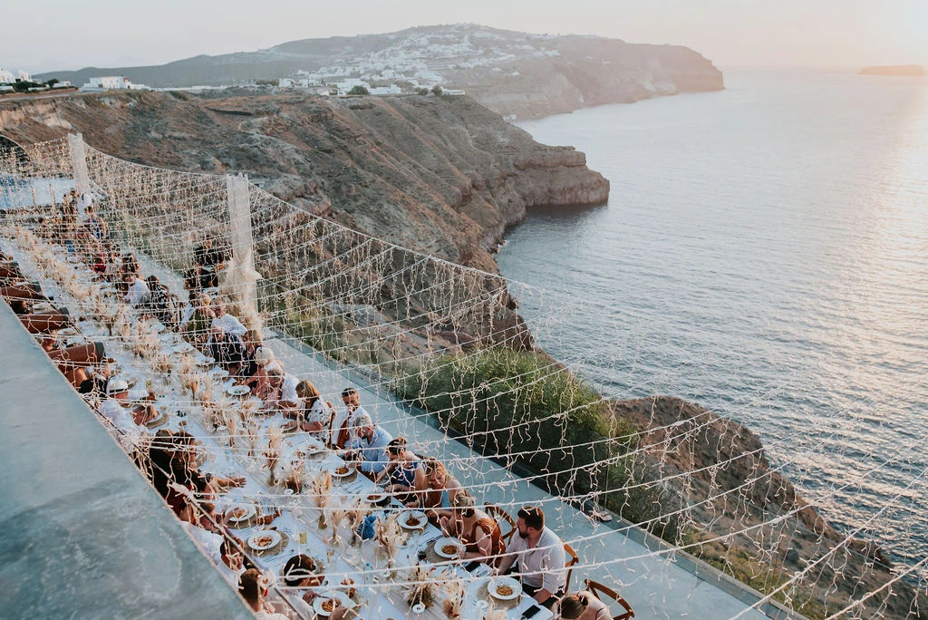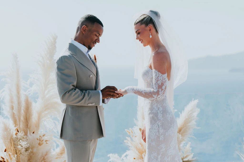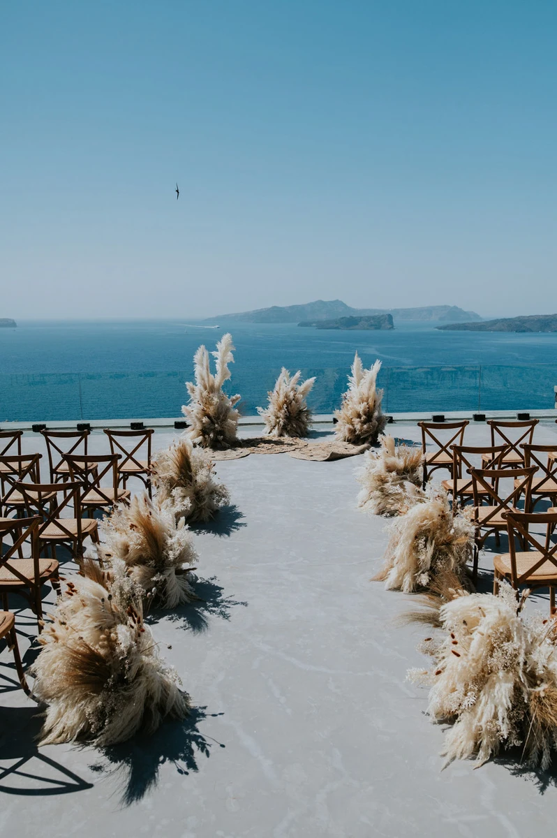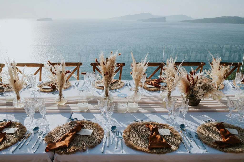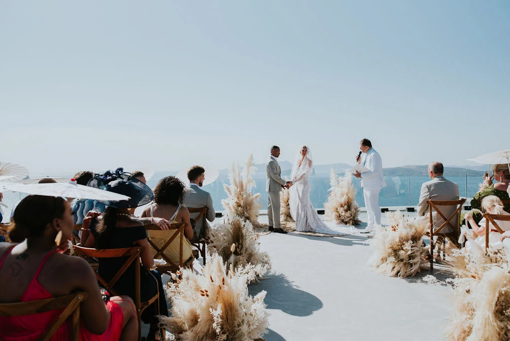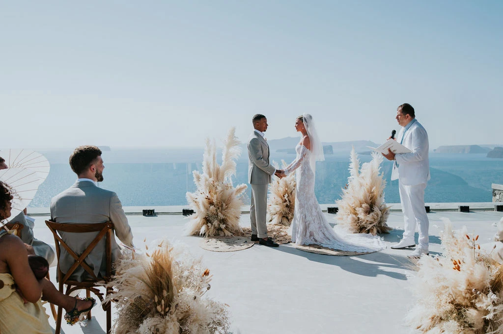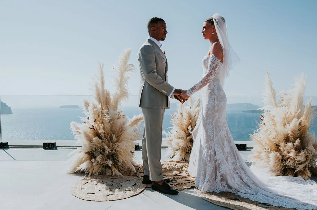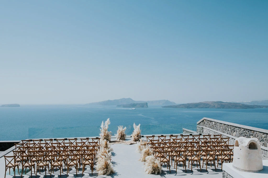 Their wedding took place on the stunning caldera cliff at Cavo Ventus, a venue that perfectly reflected their style and vision. Molly’s dream of a terracotta-themed wedding came to life beautifully, blending seamlessly with the natural elegance of the venue.