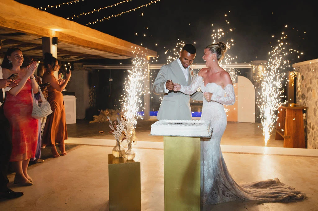 Mario Catering delighted guests with an exceptional seven-course dinner, finalized during Molly and Joel’s first visit to the island, after a carefully planned food tasting. The evening concluded with a lively party set to Joel’s handpicked house music playlist. To crown the celebration, a breathtaking display of fireworks lit up the night sky—a magical ending to an unforgettable day.