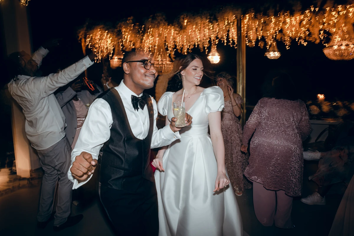The party that followed was a resounding success—everyone had an incredible time, and the bride didn’t stop dancing, all while wearing her white sneakers!